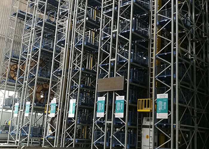 3.堆垛機與貨(huo)架配合使用(yong),高可(ke)達50米,運行軌道可(ke)以(yi)有(you)直軌,彎軌,叉軌;
